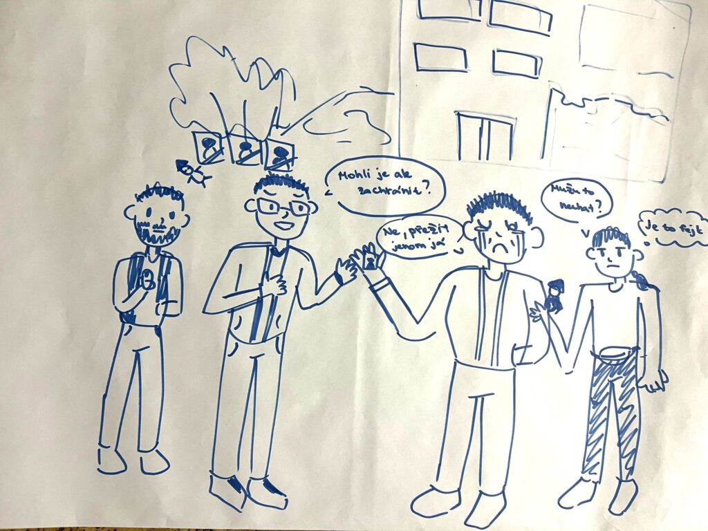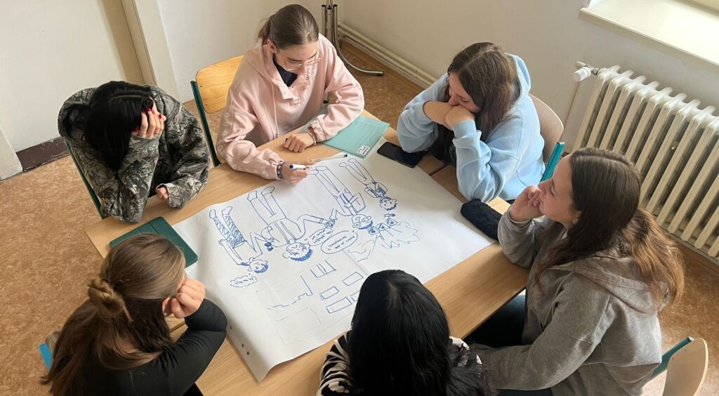 Inspirativní setkání s prezidentem, ale především silné momenty filmu Velký vlastenecký výlet jsme společně reflektovali druhý den při hodině ZSV. Zároveň jsme si před Vánoci, uprostřed hojnosti všeho, měli možnost uvědomit, že jen pár stovek kilometrů od nás zažívají miliony lidí každodenní strach o život, ztrátu domova i blízkých a absenci základních životních potřeb.